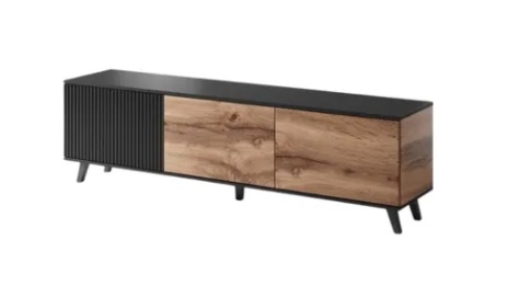 Шкаф RANDOM RTV-2 Halmar состоит из трех распашных фасадов, за которыми можно удобно хранить электронику, документы и другие предметы. Модель отличается рифленым фасадом, глубокий черный цвет которого идеально сочетается с теплым оттенком дуба вотан.