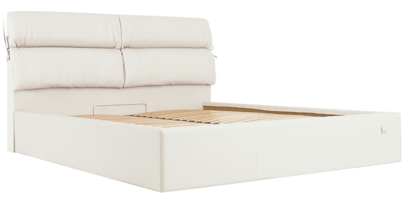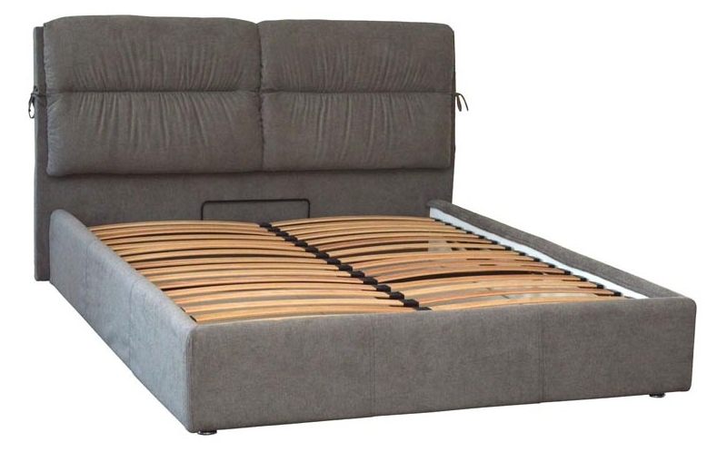 широкое изголовье + металлическая разборная рамка с ламелями (38 шт) + широкие царги (7,5 см) со съемным цельным чехлом на липучках + подъемный механизм с двумя импортными пневмопатронами + бельевой ящик глубиной 18,5 см со спанбондом и ламинированным ХДФ на дне + пластиковые опоры 5 мм
